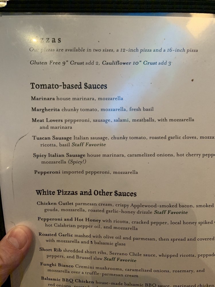 gorgonzola, roasted black olive, artichokes, pecorino, basil